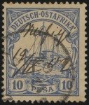 This set of overprints was released beginning in 1905. The stamps are overprints of the German “Germania” issues.