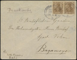 In 1900, a German wine firm in Malaga speculated that they would see an increase in business if the sent their offer sheets to potential customers with German Morocco postage instead of standard German postage. As the firm was located in Germany, this required them to ship their printed matter to Morocco in crates, where each mailer then had to be individually stamped and canceled by the Tanger post office. Eventually, all five German wine firms in Malaga were using this method. Approximately 200,000 to 400,000 printed matter mailers were processed annually using this method. This eventually led to a high demand for the 5 Centimos on 5 Pfennig stamps, as this was the printed matter rate from Morocco to Germany.