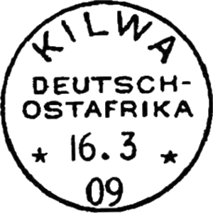 Kilwa was among the earliest Germans settlements in Deutsch-Ostafrika, owing mainly to its location on the coast. A post office was opened at Kilwa on 14 April 1892. The post office remained open forced to close due to the deteriorating military situation on 7 September 1916.