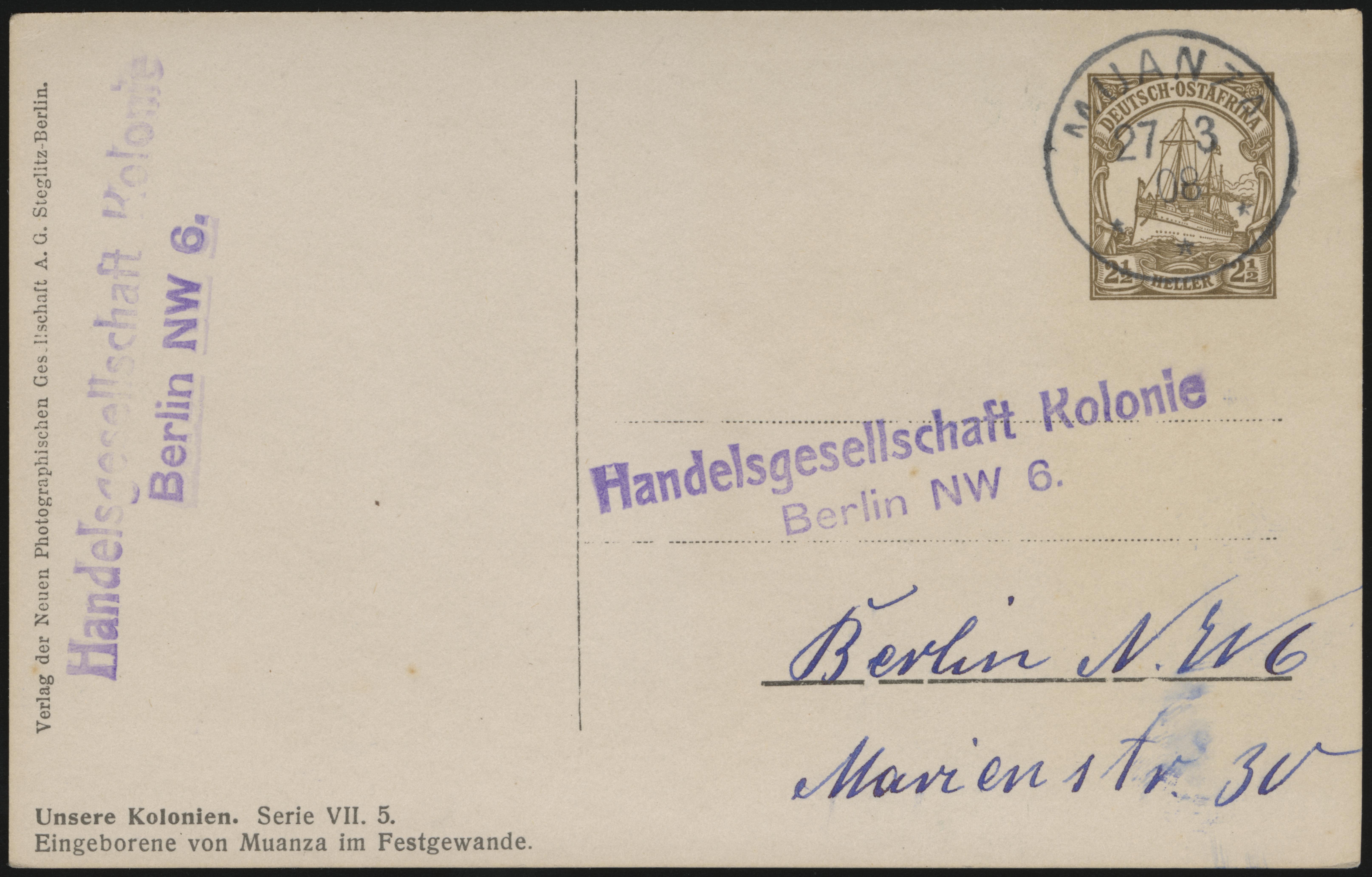 Muanza was among the earliest Germans settlements in Deutsch-Ostafrika, owing mainly to its location on the shore of Lake Victoria. A post office was opened at Muanza on 1 October 1895. In March 1909, the spelling was changed to “Muansa”. The post office remained open until Muansa was captured by the British on 14 July 1916.