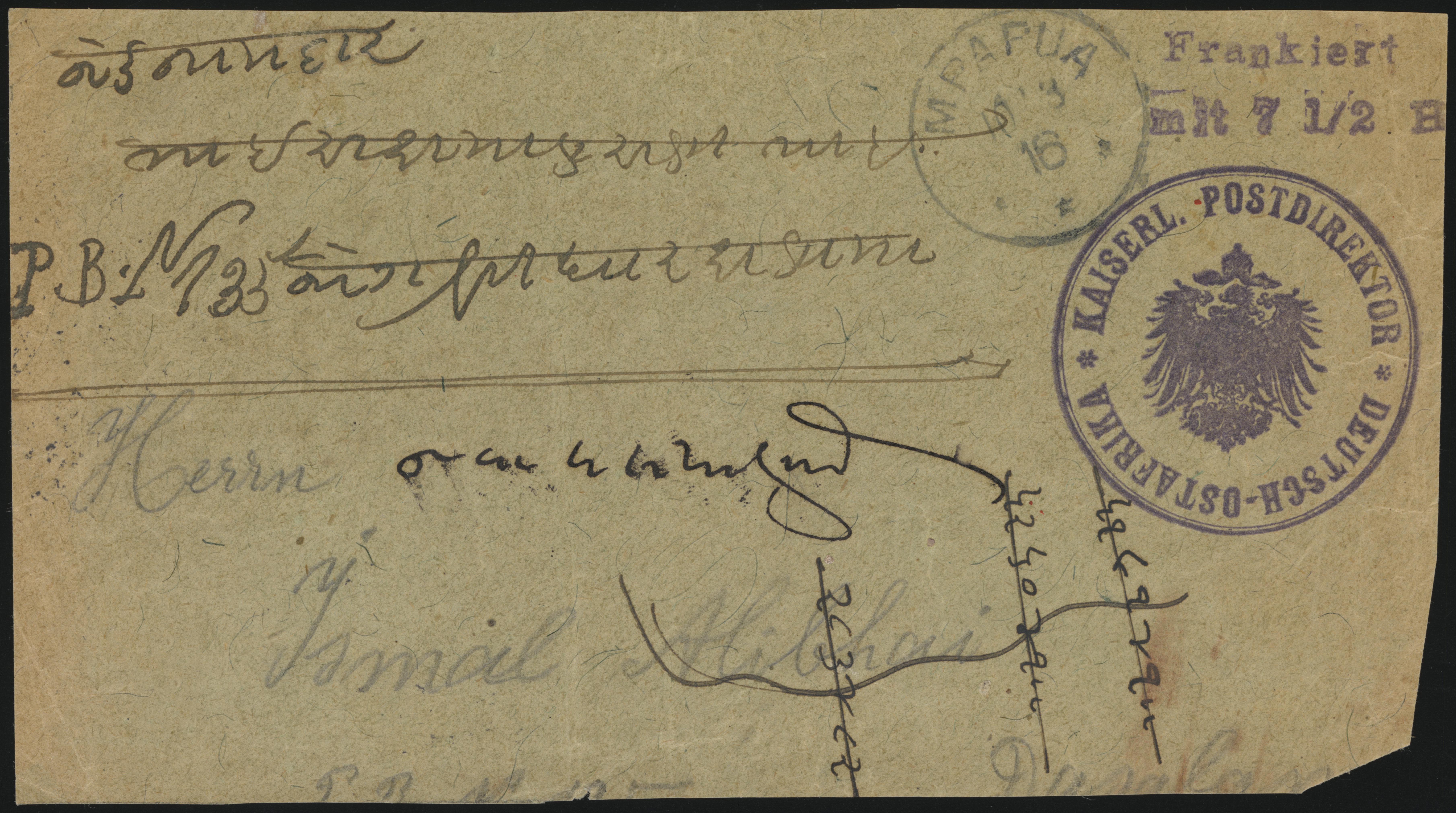 - ArGe Kolonien KAISERL. POSTDIREKTOR DEUTSCHE-OSTAFRIKA Frankiert mit 7 1/2 H