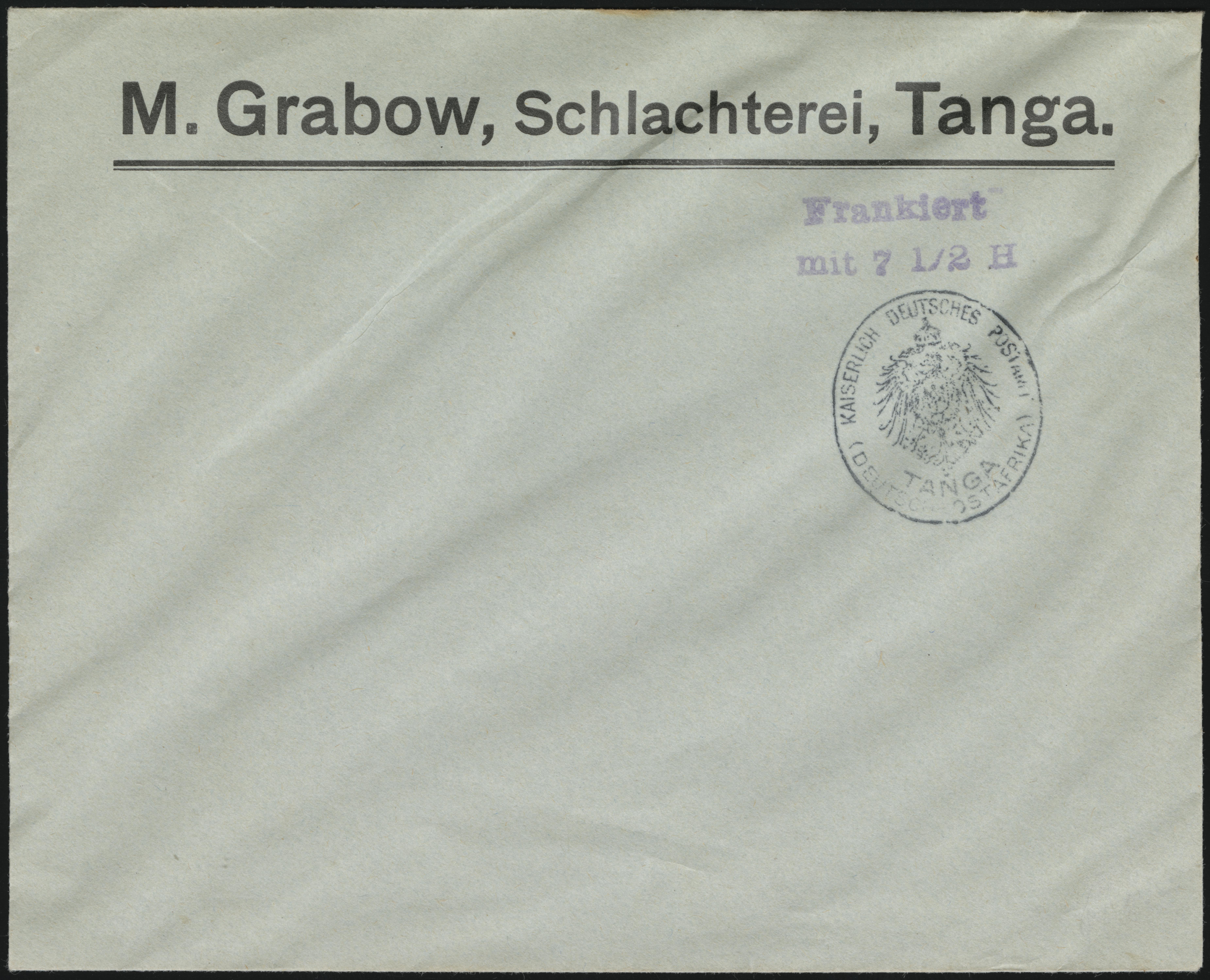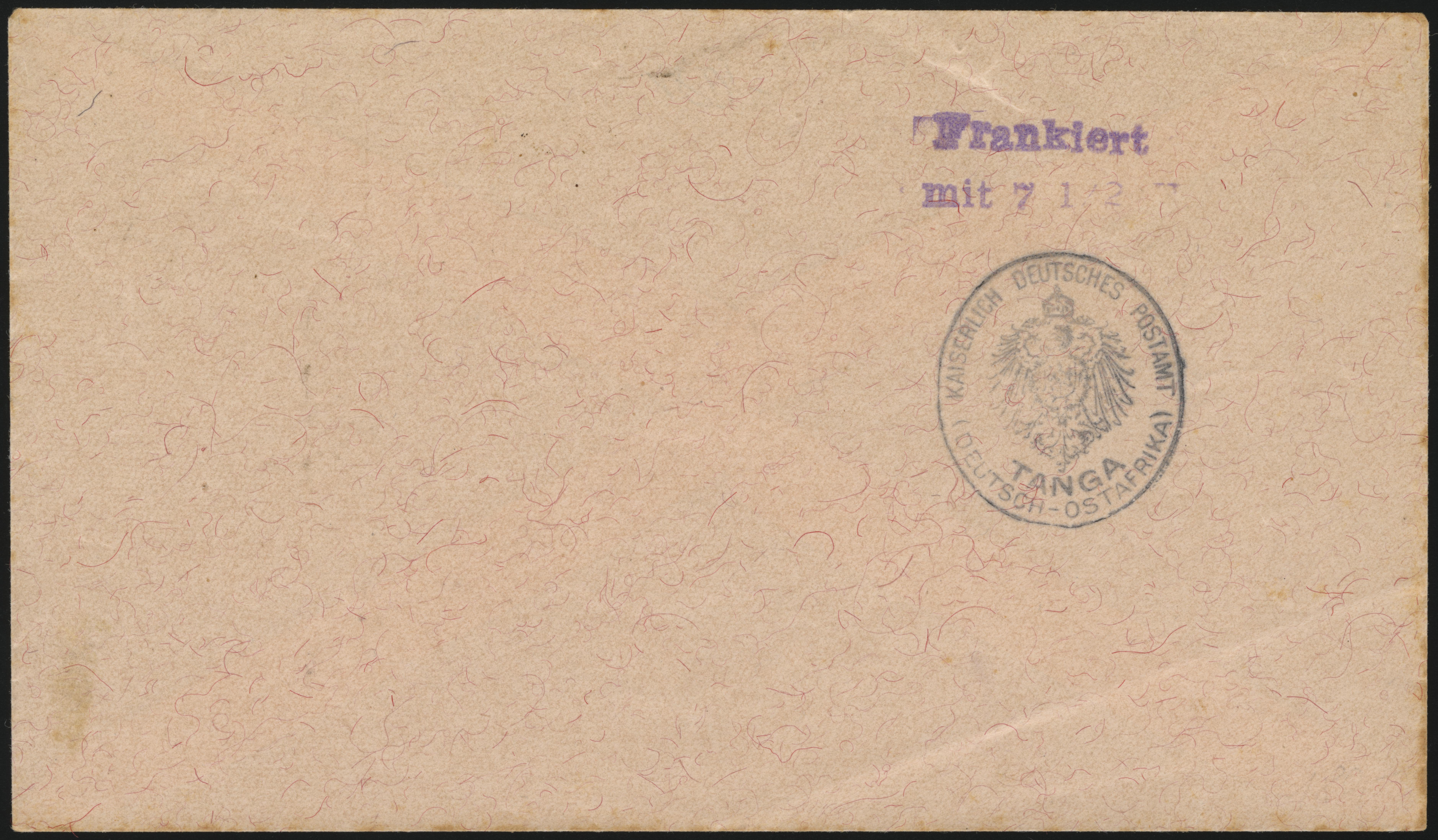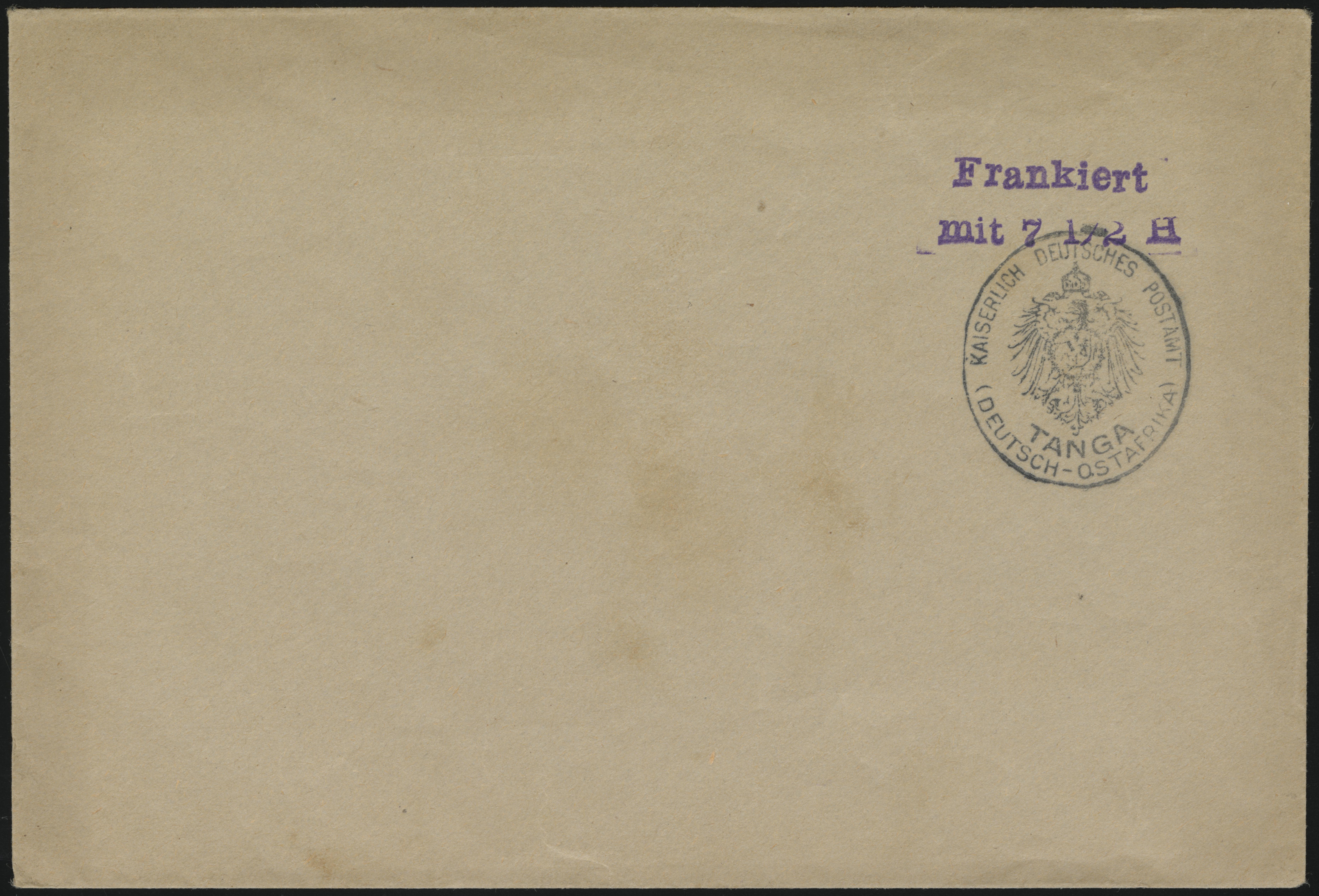 - ArGe Kolonien KAISERLICH DEUTSCHES POSTAMT TANGA (DEUTSCH-OSTAFRIKA) Frankiert mit 7 1/2 H