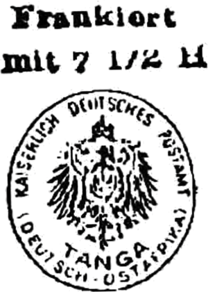 As part of the continuing efforts to alleviate the shortage of stamps due to the war situation, in January 1916, three post offices were authorized to frank pre-paid private envelopes. Envelopes could be sent from any post office to Daressalam, Morogoro, or Tanga, where they would be franked with the official seal of the Post Director and a notation that the 7½ Heller postage had been pre-paid. The pre-franked envelopes could then be used at any post office remaining open in the colony.
