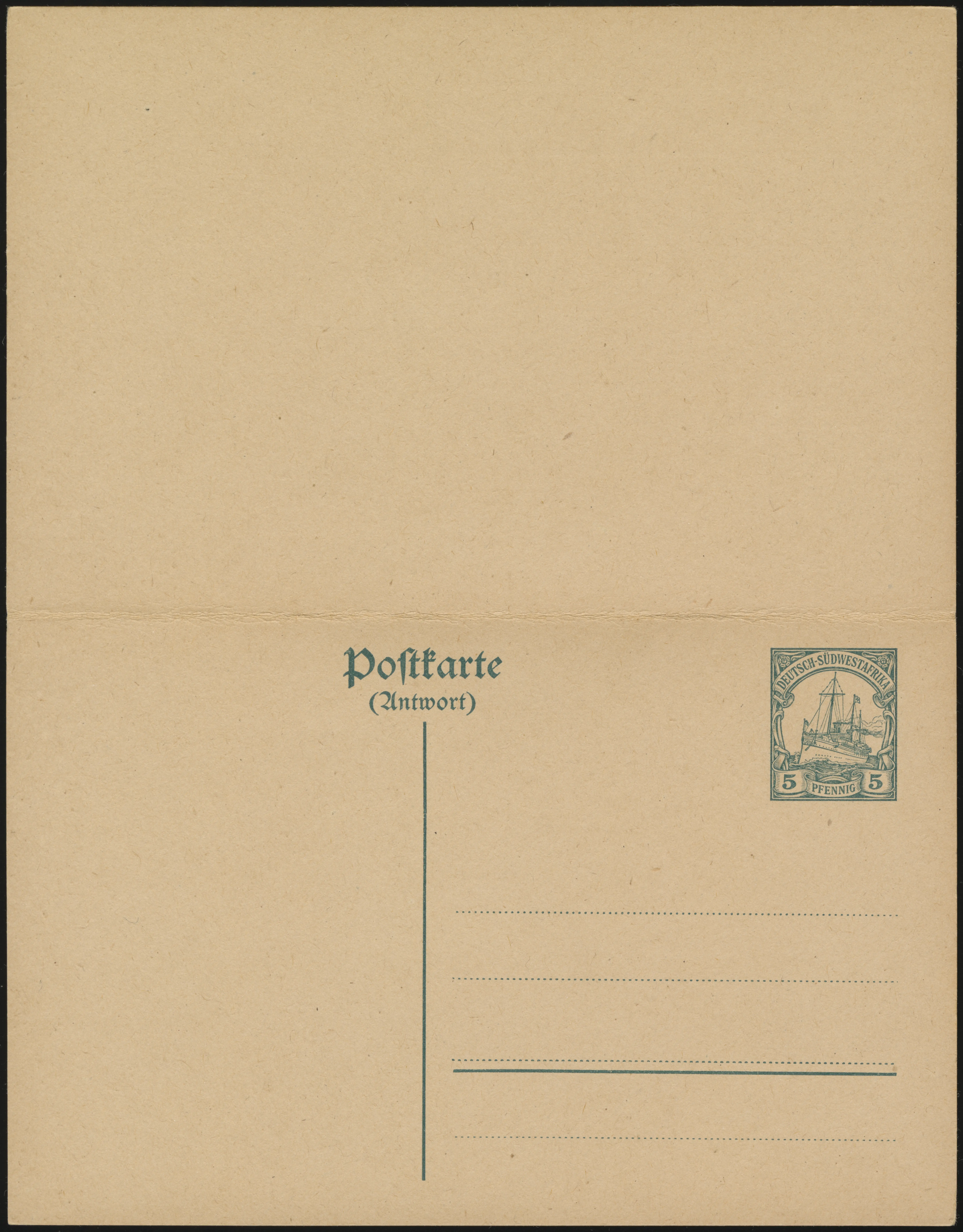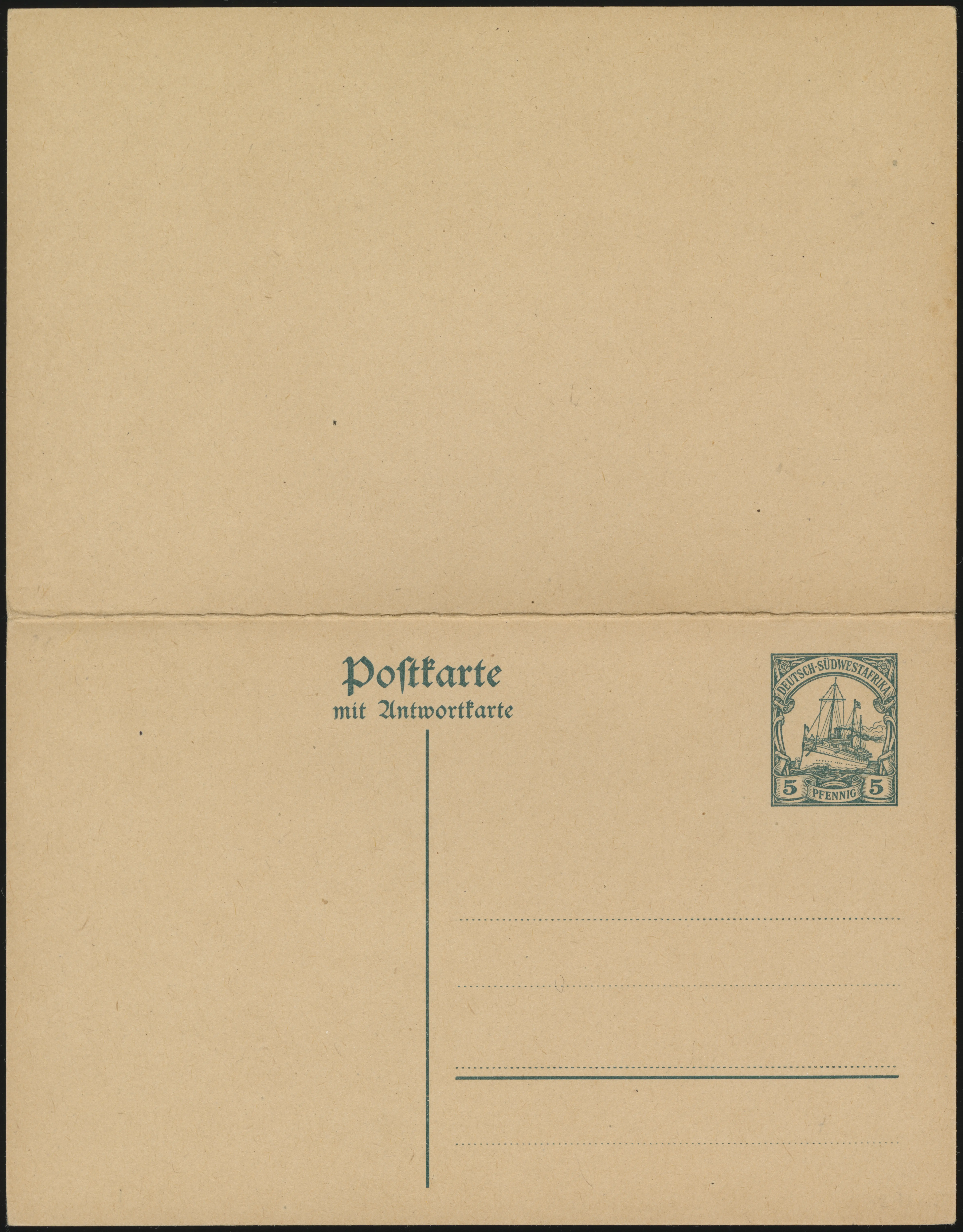 German Southwest Africa 1919 / 1921 Yacht Postal Stationery Ei P21 (front) Ei P21 (rear) Ei P22 (front) Ei P22 (rear) The 1919/21 Yacht Postal Stationery are without watermark, and the text is centered on the vertical line. Set Date(s) 1919 / 1921 1919 / 1921 Yacht Postal Stationery Ei P21 (front) Ei P21 (rear) Ei P22 (front) Ei P22 (rear) The 1919/21 Yacht Postal Stationery are without watermark, and the text is centered on the vertical line. Set Date(s) 1919 / 1921