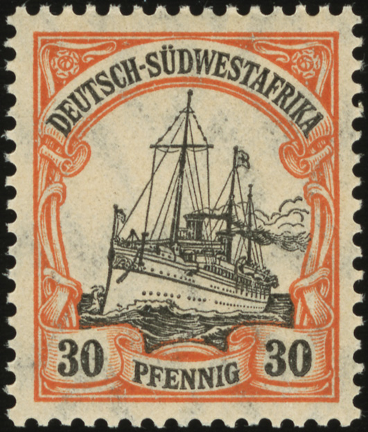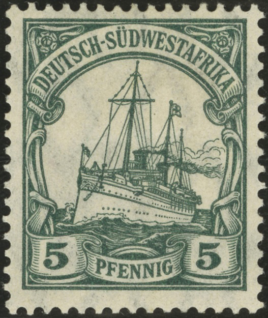 The larger format Yacht Issues of the German Colonies have slight differences in color, perforation, or frame/center types. For a detailed description of the frame/center types, see the guide to Colonial Frame & Center Types.