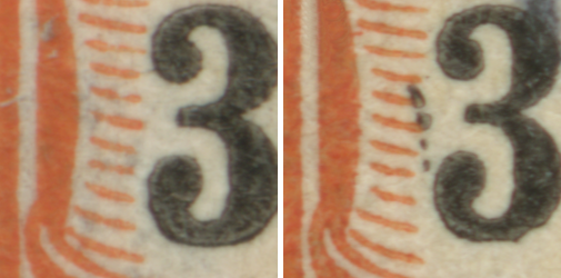 MiNr. 28 Plate Flaw I — black dots to left of left value (right)