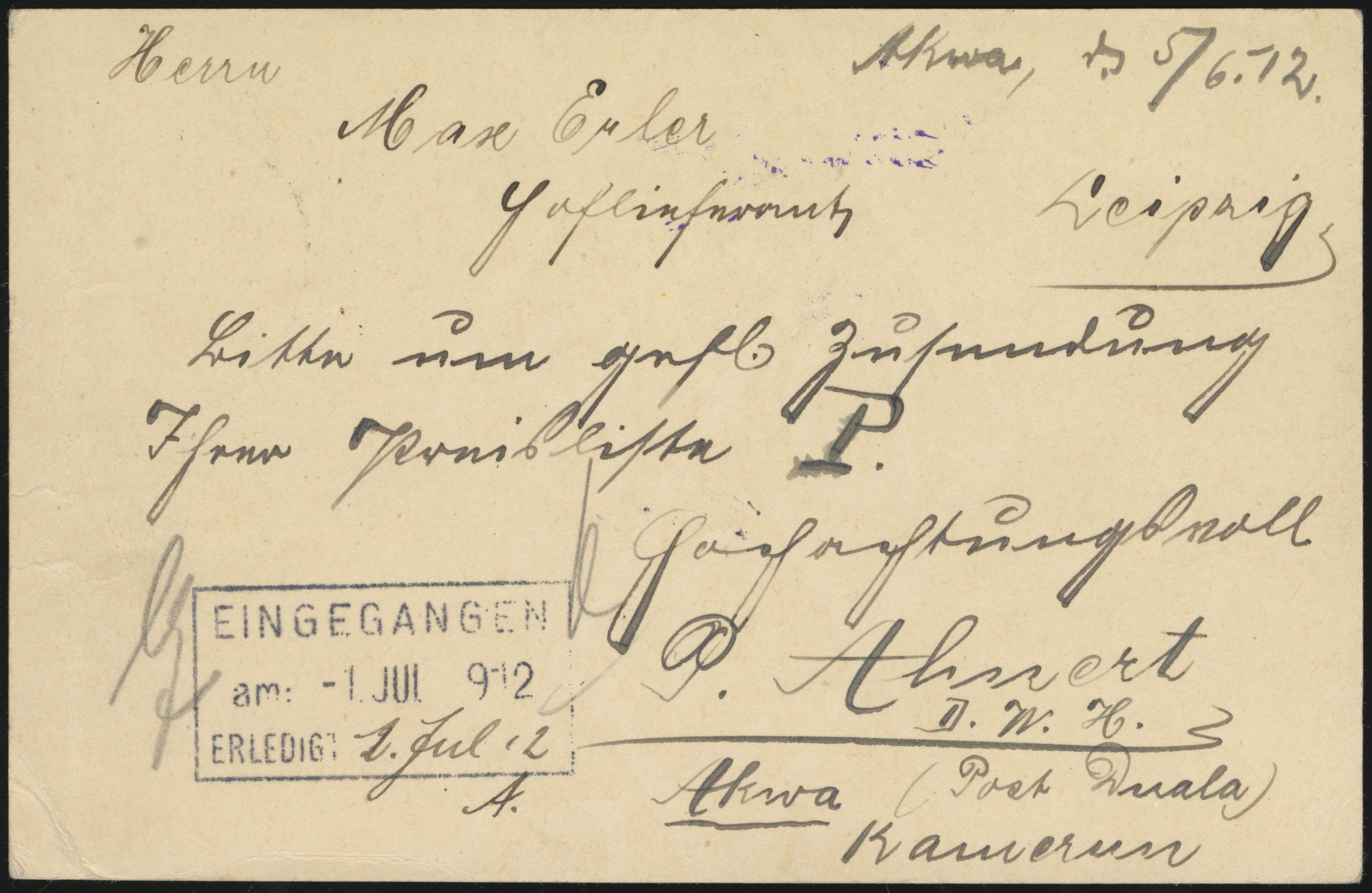 In 1885, steamships of the Woermann-Linie began providing mail service between Germany and the West African colonies on the Linie Hamburg-Westafrika.