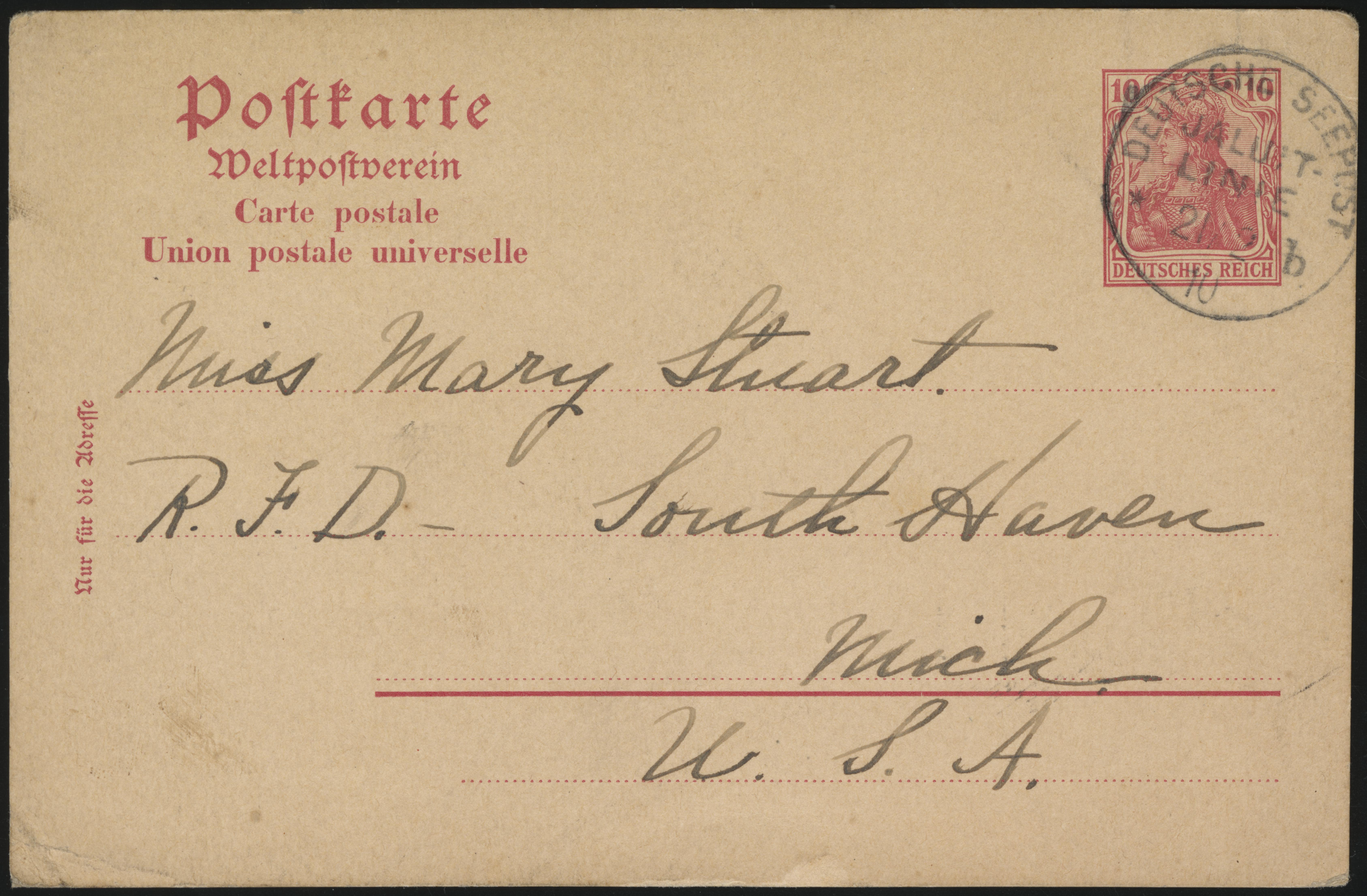 In early 1905, service was extended to Deutsch-Neuguinea. In conjunction with this change, the line was renamed the Jaluit Linie and a new canceller was introduced.