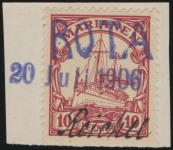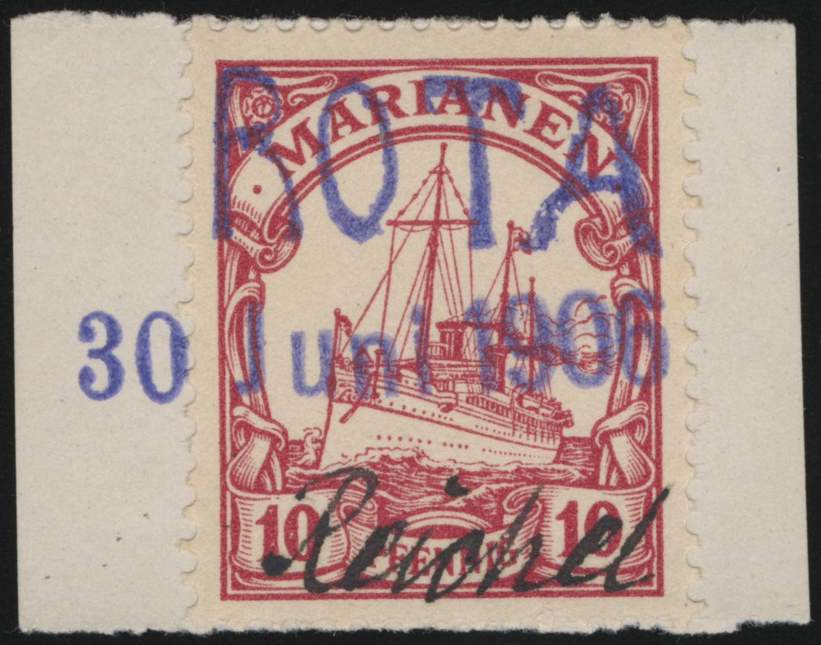 Upon Reichel’s return to Saipan due to illness in 1904, he surrendered the original handstamp to local authorities. Upon his recovery and return to Rota, the handstamp could not be found, so he created a new one that was used in 1906. Additionally, he was now required by the Reichspost to affix his signature alongside the handstamp.