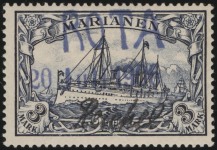 However, in mid-June 1904, a German agronomist, Herr Volkmar Reichel, was transferred to the island of Rota. He was the only German on the island. For reasons that are unclear, Herr Reichel began operating an “auxiliary postal station” on the island. It’s possible this was done because, during periods in which Saipan was without steamer service, steamers would stop at Rota bearing Marianen mail which had not been canceled, and Herr Reichel took it upon himself to cancel these items. Regardless, despite repeated requests to Berlin, this “auxiliary postal station” was not authorized by the Reichspost.