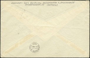 A large quantity of mail was also carried on the return flight from Lakehurst, N.J. This mail bears a large violet Lakehurst confirmation stamp.